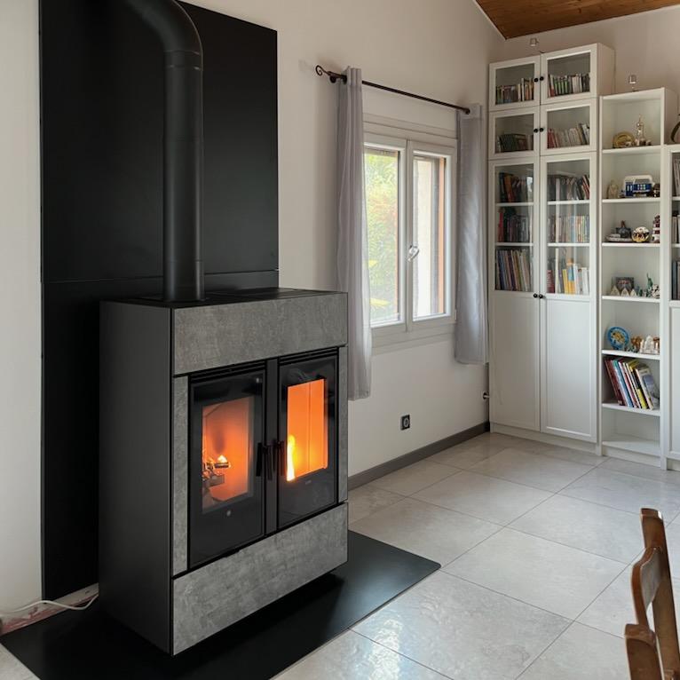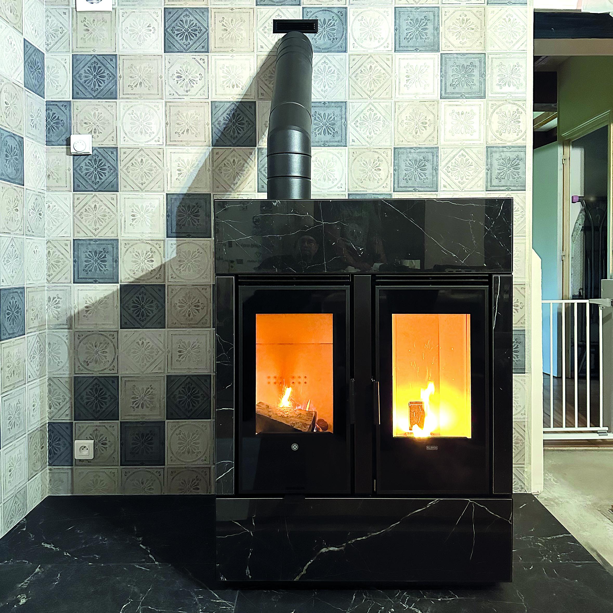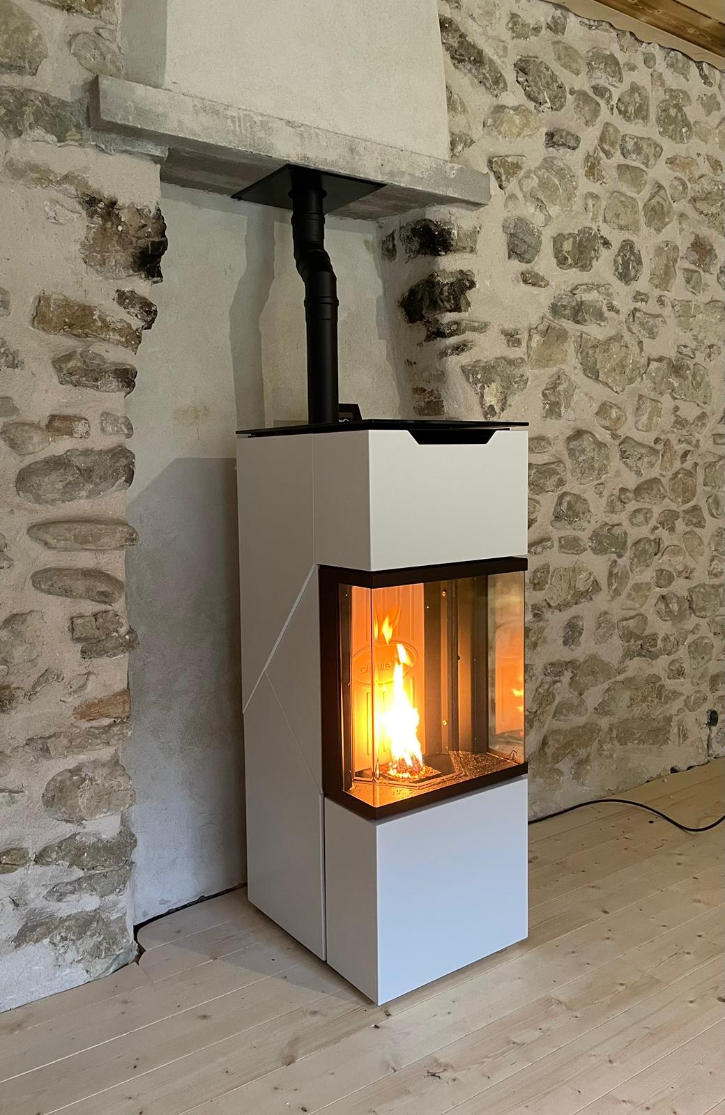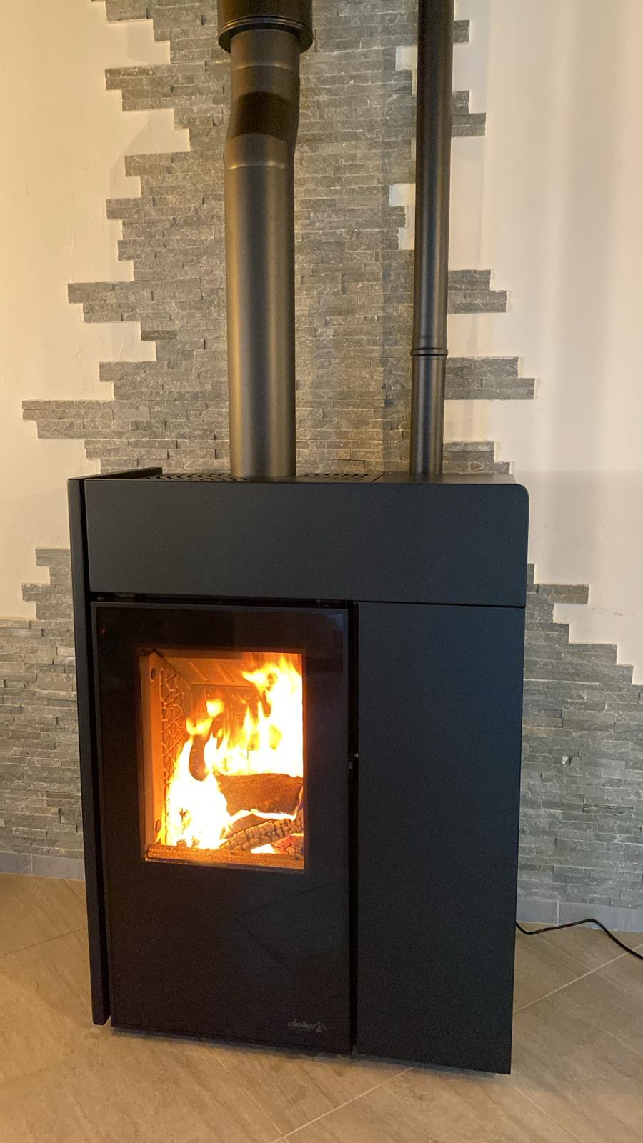 Utilisation buches& granulés. Compact, avec alimentation par le dessous. Très peu d'entretien, connecté.