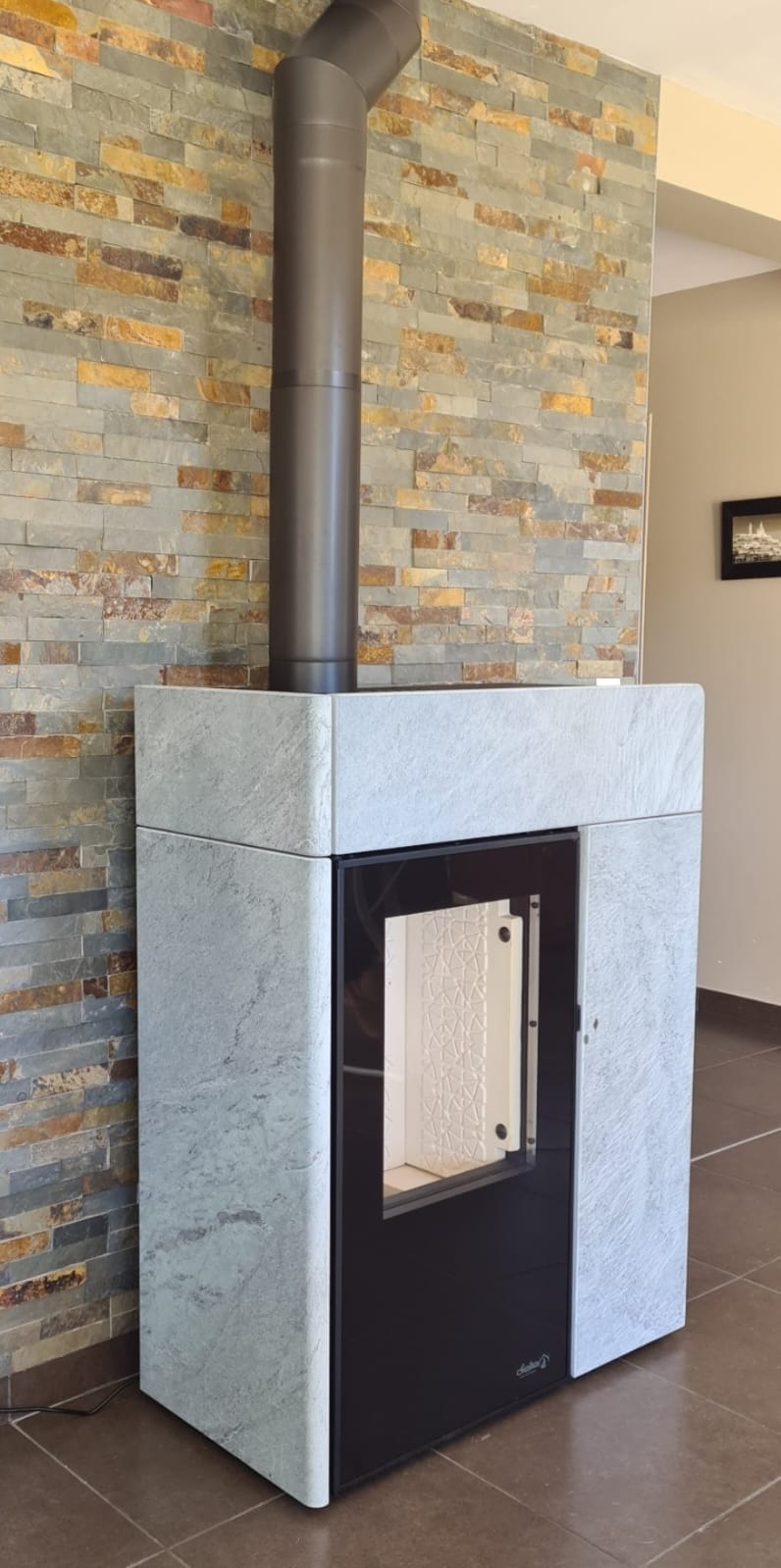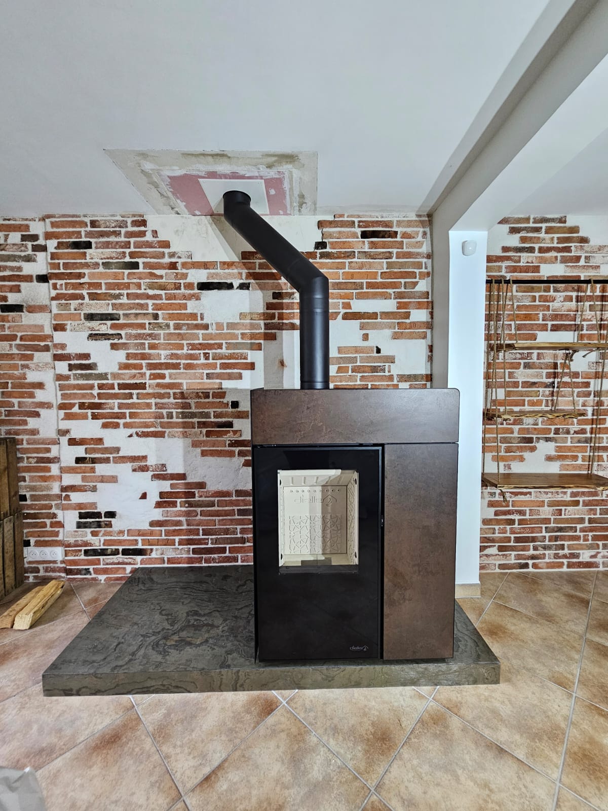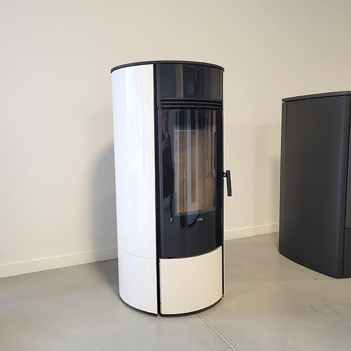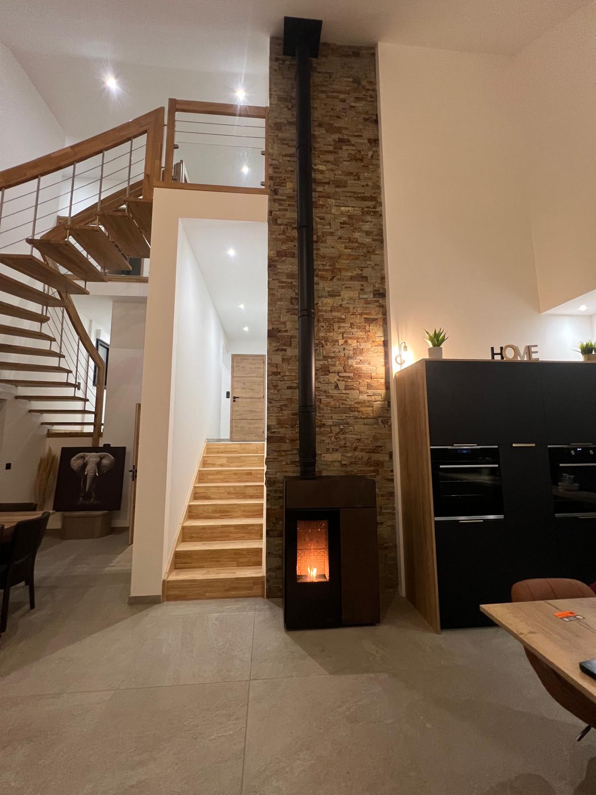 Utilisation buches& granulés. Compact, avec alimentation par le dessous. Très peu d'entretien, connecté.
